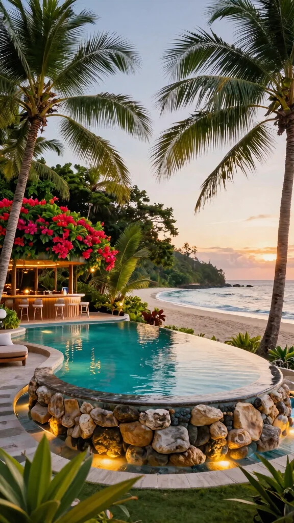 To truly embrace this tropical vibe, consider adding a sandy beach area for lounging or even a swim-up bar for entertaining friends. Opt for hardwood or composite decking to enhance the natural feel, and don’t overlook LED lighting to illuminate your oasis at night, creating a magical atmosphere.