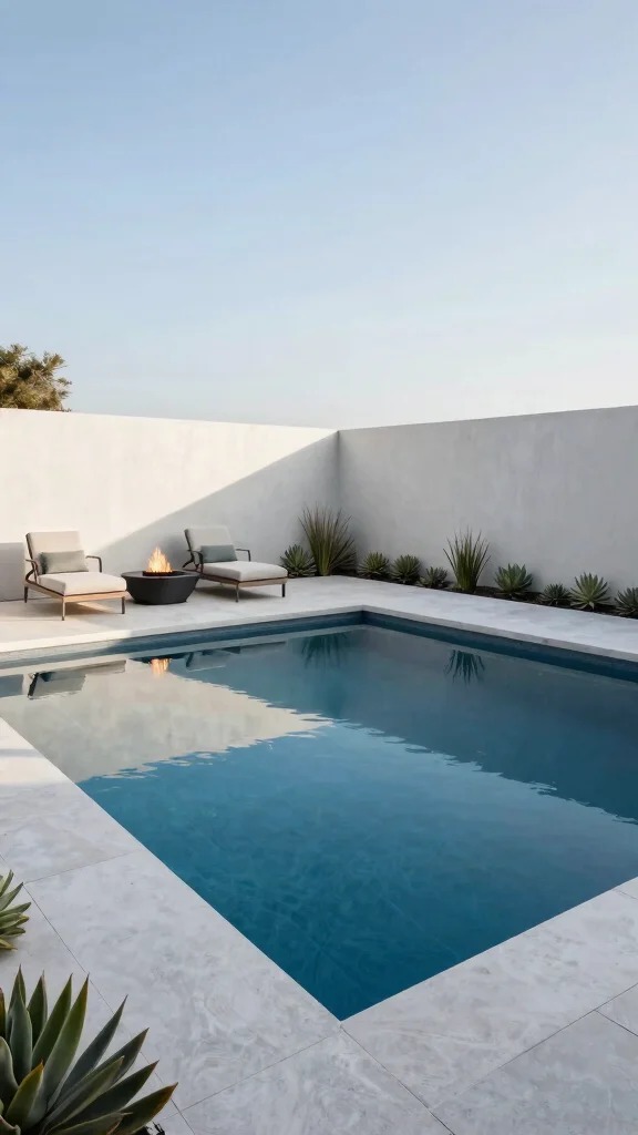 Think about including a sunken lounge area with chic lounge chairs or a fire pit that enhances your modern aesthetic. A sleek black or dark blue pool surface can create stunning reflections while maintaining that minimalist vibe.