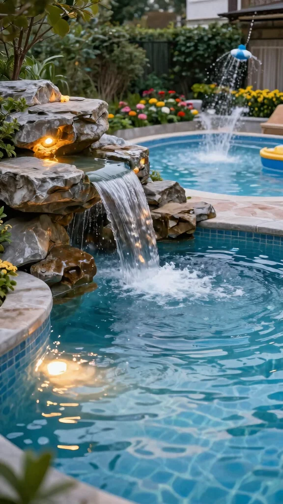 Incorporating LED lighting within these features can create stunning nighttime displays, illuminating the water and casting beautiful reflections. Consider adding a splash pad for kids, ensuring fun for the entire family.