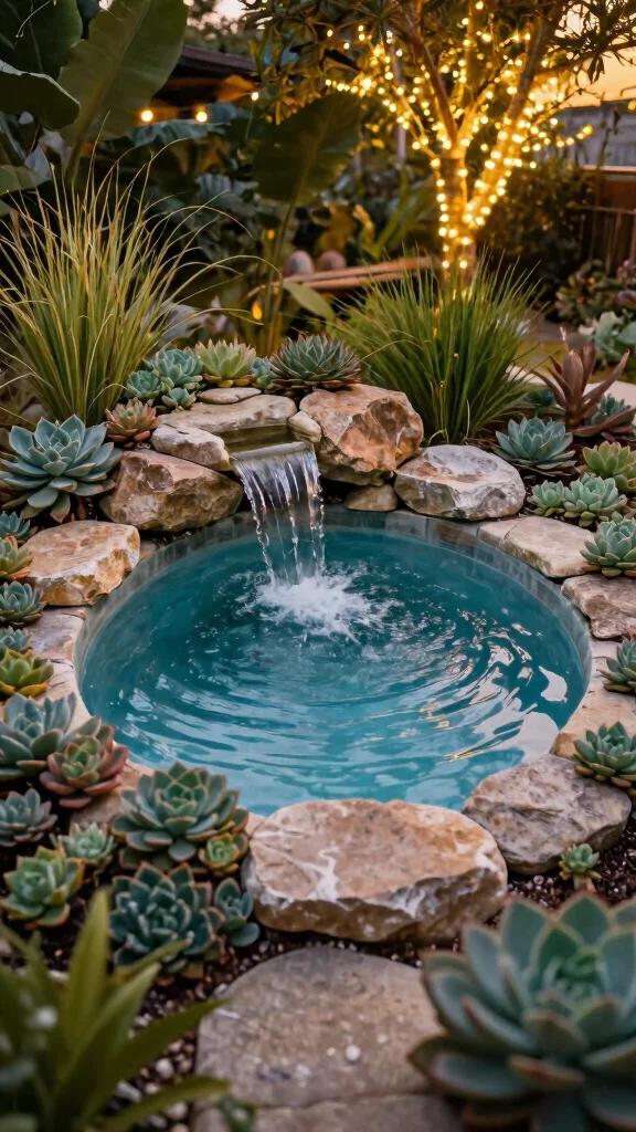 Start by choosing low-maintenance plants like succulents that thrive in your local climate. Incorporate underwater lighting for a magical evening glow, enhancing the overall ambiance. This space not only provides a retreat but also adds beauty to your garden.