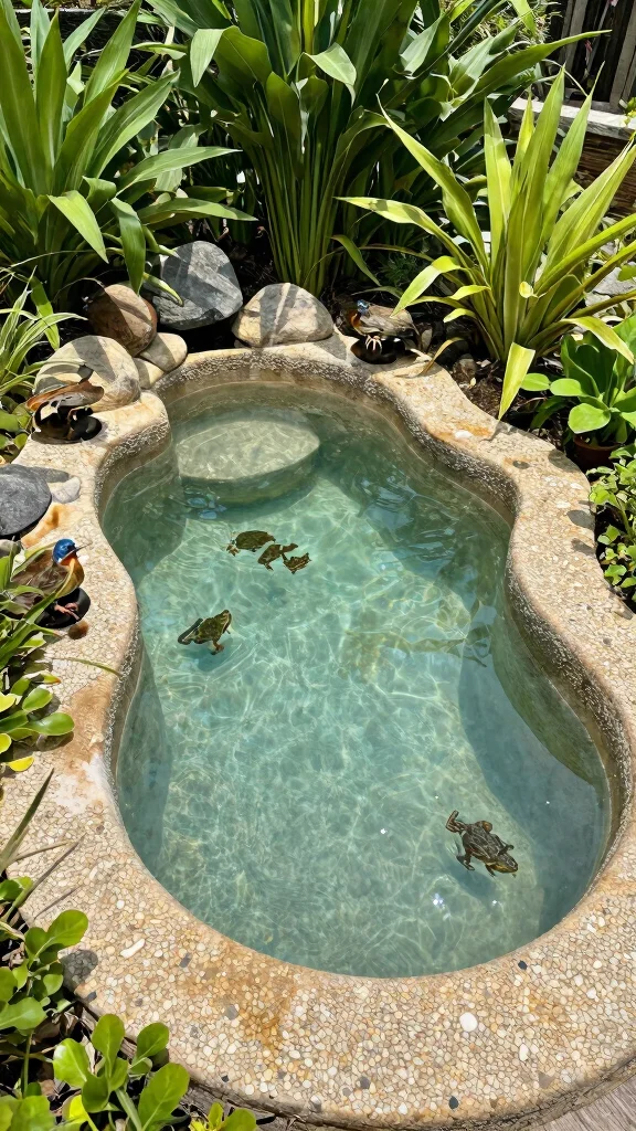 Ensure the interior is lined with a waterproof membrane for durability. Fill your pool with water plants or even a few goldfish to bring it to life. This project allows you to express your creativity while being eco-friendly by reusing materials.