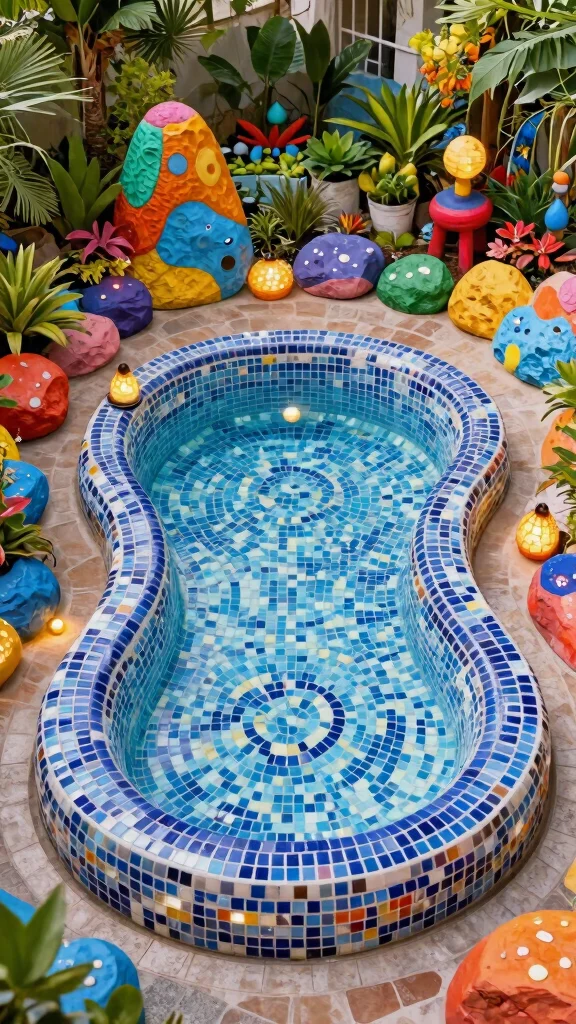 Add unique designs, such as mosaics or sculptures, to personalize and enhance your mini pool area.