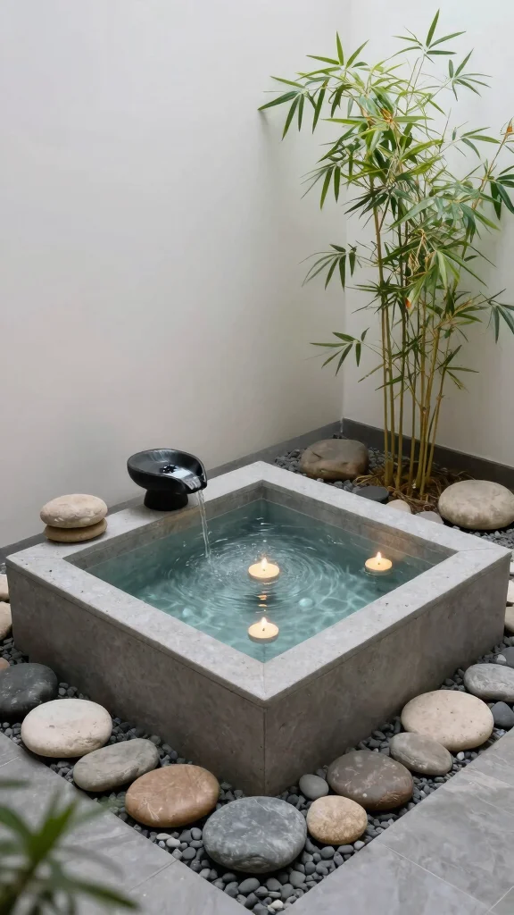 Incorporate a small pond fountain or floating candles to add to the peaceful atmosphere. This serene spot can serve as a meditation area or a quiet retreat for reflection and relaxation.