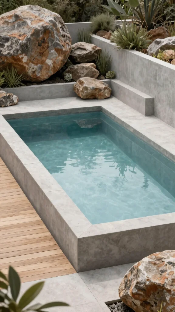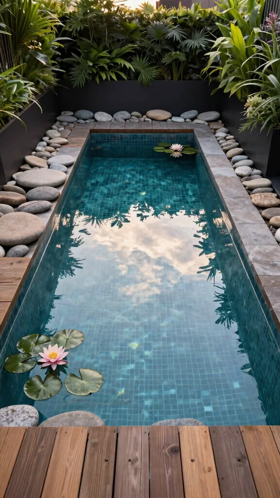 Experience tranquility with a zen pool that radiates peace in your small garden. Opt for a simple square design that emphasizes cleanliness and harmony with nature. Surround the pool with smooth stones and minimalistic plants like bamboo or Japanese maples to enhance the calming vibe.