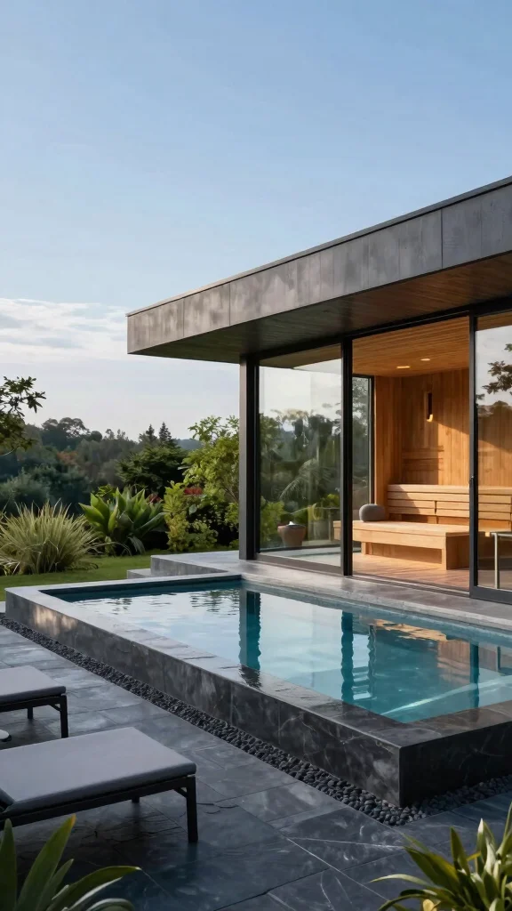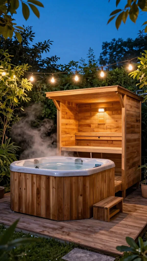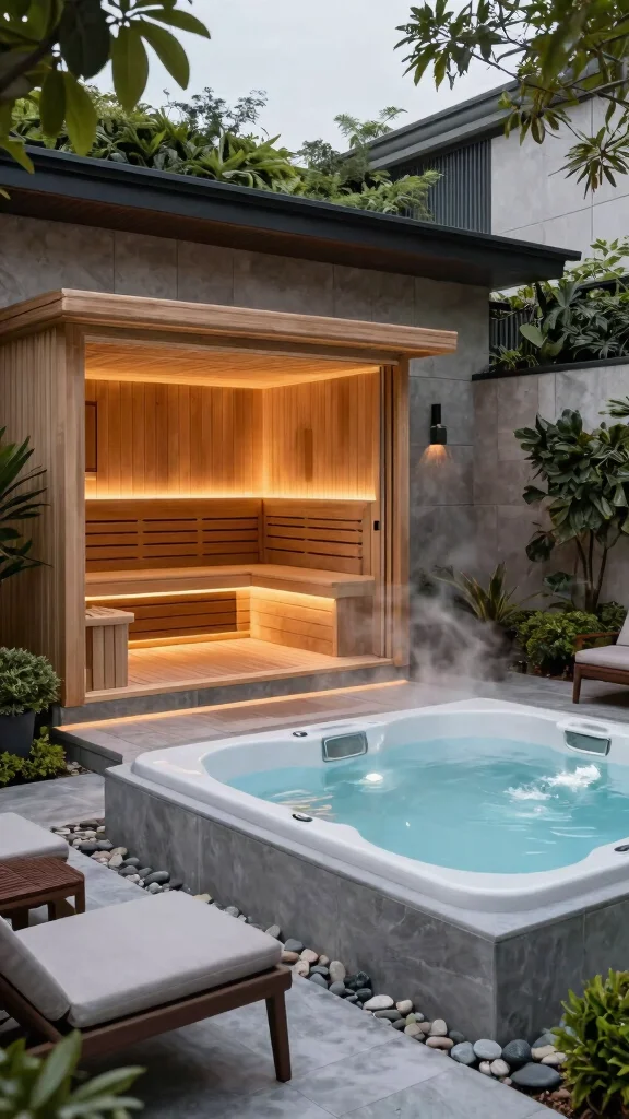Incorporate plants and greenery around your sauna and hot tub for a serene, garden-style experience.