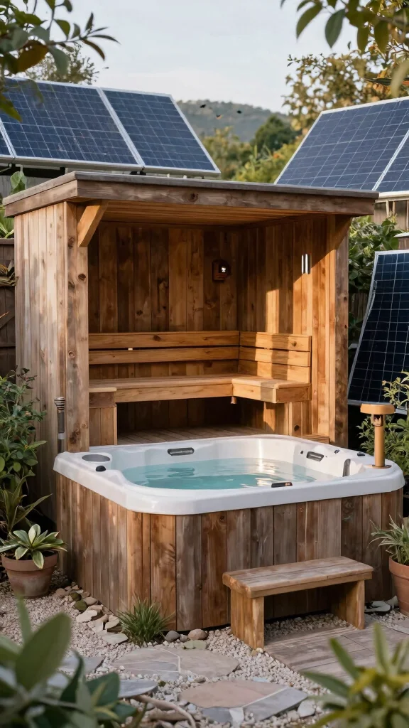 Consider eco-friendly options like solar-powered hot tubs and sustainably sourced saunas for an environmentally conscious retreat.