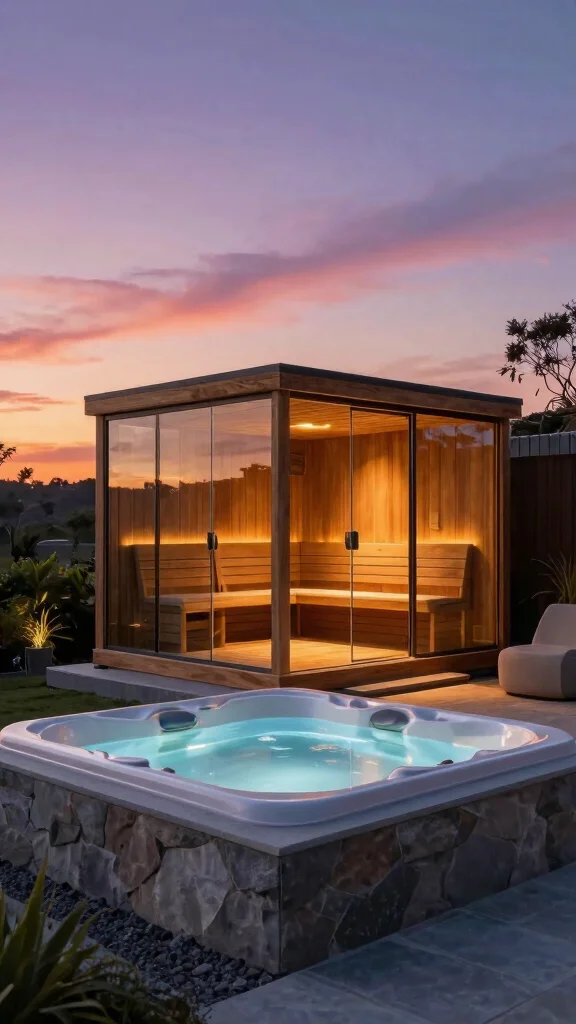 Pair your sauna with a complementary hot tub style, such as a round hot tub with a rustic sauna for visual harmony.