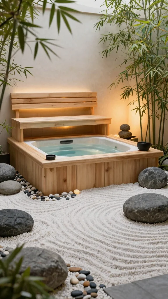 The best combinations for a cohesive garden design: pair warm woods with cool stone or concrete to create contrast; use a consistent horizon line and matching planters to tie the space. Build a soft, layered privacy screen with evergreens or trellises that frame the garden design while still letting in natural light. Layer lighting for evenings: underwater pool or hot tub lights, pathway lights, and shaded seating zones to enhance the spa experience. Add a water feature nearby for sound and serenity and choose composite decking or stone that handles weather with minimal upkeep. This synergy boosts outdoor relaxation and makes your area a true backyard wellness retreat.