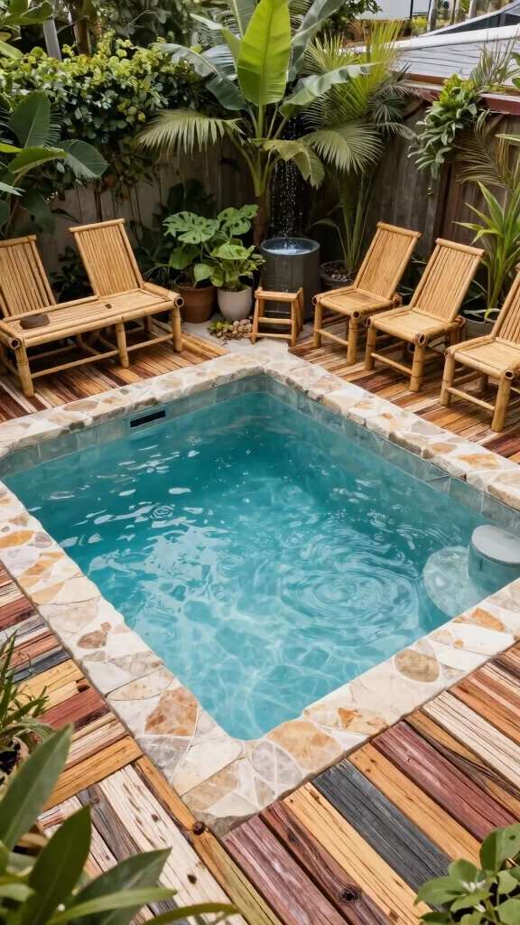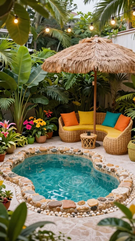 Imagine turning a small outdoor area into a vibrant tropical retreat. A plunge pool designed with lush greenery and bright flowers can transport you to paradise, making it the perfect getaway from daily life. Using natural materials like bamboo for furniture and decor, you can enhance the resort-like ambiance. Bright textiles and palm plants not only provide shade but also a pop of color amidst the greenery.