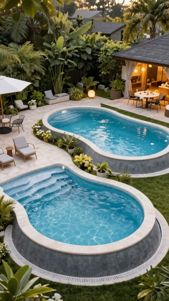 To create a more organic feel, consider a pool shape that mimics natural ponds. Potted plants around the pool can add lushness while being easy to maintain. Enhance the atmosphere with string lights overhead for magical evening swims.