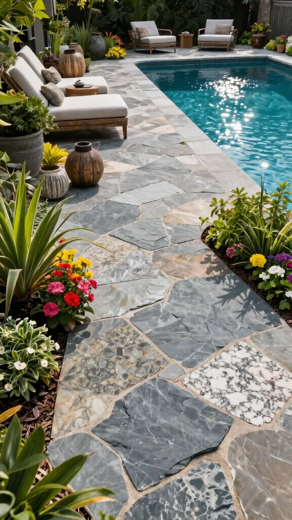 – Discover creative and eco-friendly materials for your pool deck, including natural stones and recycled plastics.