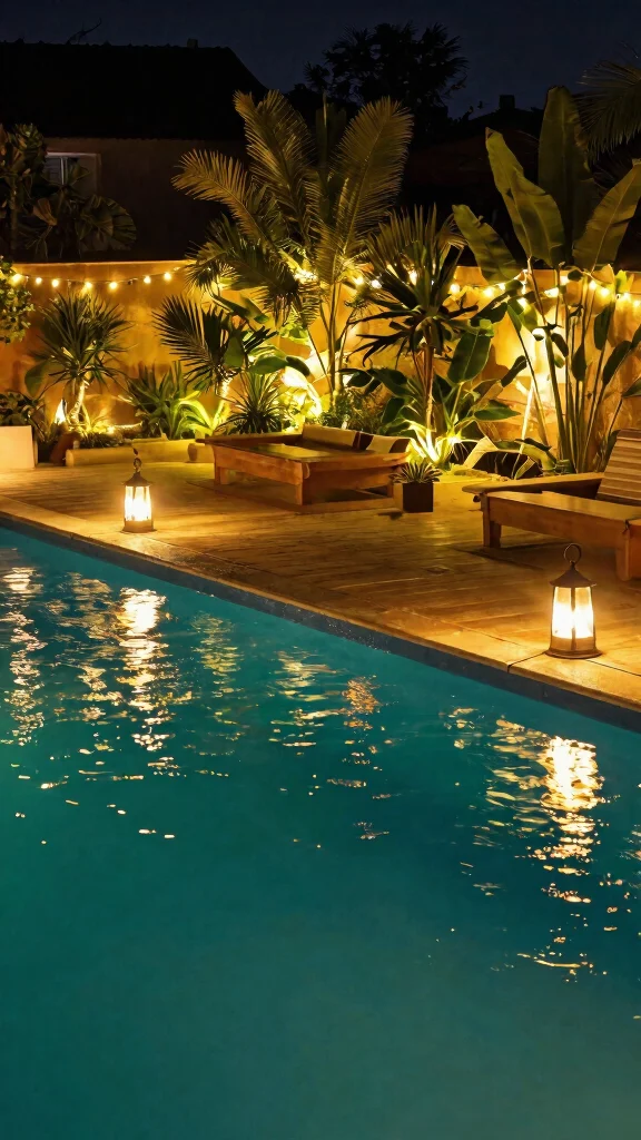 Illuminate your pool deck with stylish solar lighting! These lights come in various designs, from chic lanterns to elegant string lights, providing a sustainable way to brighten your space. Plus, they help you save on energy costs while enhancing the nighttime ambiance.